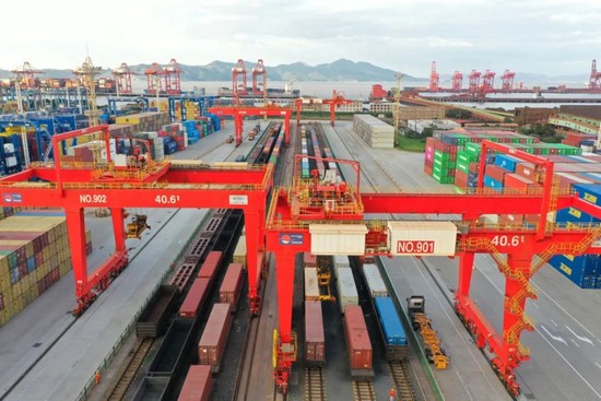 在客户服务方面,宁波舟山港针对疫情和天气影响,持续关注客户需求,积极对接国铁、船公司、货代等,协调解决短驳、空箱站外堆存、工厂装箱、铁路装车等操作环节问题,为企业畅通物流通道,确保货物“进得来、出得去”。宁波舟山港积极提升海铁联运全流程服务质量,以数字化改革为抓手,着力打造一个面向客户、车队、船公司等的海铁联运业务统一受理窗口,实现海铁联运全程一站式线上服务。今年以来,宁波舟山港已相继开通抚州、宣城、宜兴北等海铁联运线路,提升盐城、武汉、永康等多趟海铁联运专列开行频次,增加服务全程物流的船公司数量和业务覆盖区域,提高“国际班列+海铁班列”的对接频率,促进海铁联运业务高质量发展。